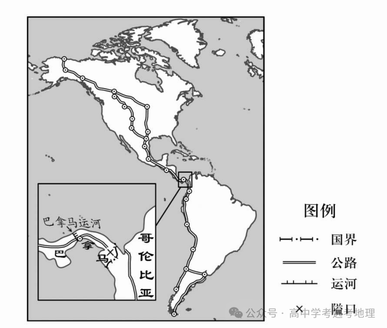 (2024·江苏·高考真题)始建于上世纪20年代的泛美公路干线km,但在巴拿马与哥伦比亚两国交界处的达连隘口段至今尚未连通。下图为“泛美公路达连隘口段示意图”。据此完成下面小题。展开全文
