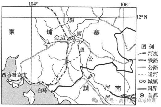 千米■★■■◆■,流经缅甸、老挝、泰国、柬埔寨和越南,并从越南胡志明市流入南海。柬埔寨中部和南部为平原,德崇扶南运河是一条连接柬埔寨白马省海港和金边港的运河,横跨4个省份■■,全长约180千米,覆盖人口约160万人。德崇扶南运河项目是柬埔寨的国家级战略项目★◆◆◆◆■,预计耗资17亿美元。2024年8月,德崇扶南运河开工建设,该项目由我国企业承建。下图为德崇扶南运河位置示意图。(1)简述德崇扶南运河项目选线的优点。