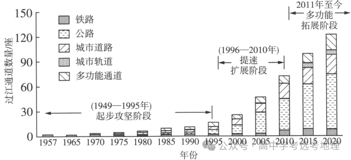.不同阶段长江下游地区过江通道数量均较少的主要限制性因素是()A.自然环境